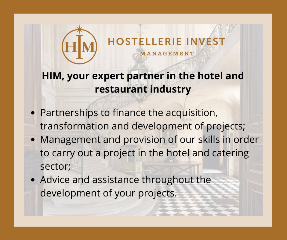 HOSTELLERIE INVEST MANAGEMENT brings together professionals who are experts in the fields of hotel, restaurant and gastronomy sectors in general.